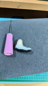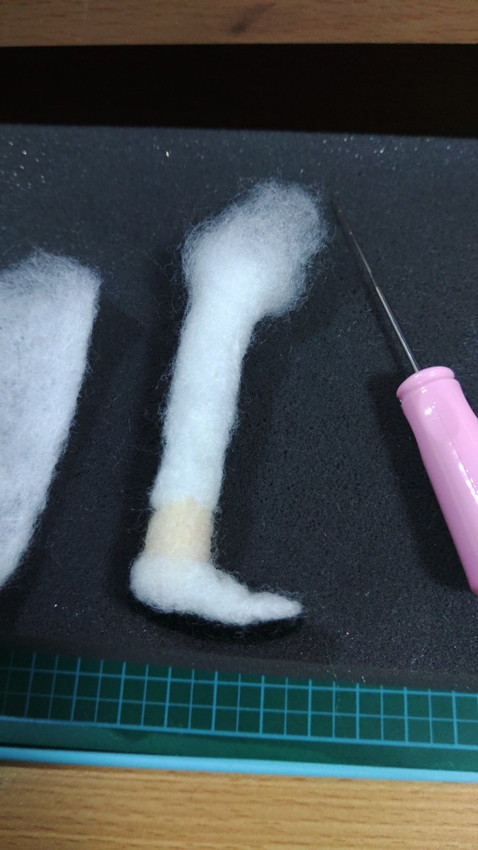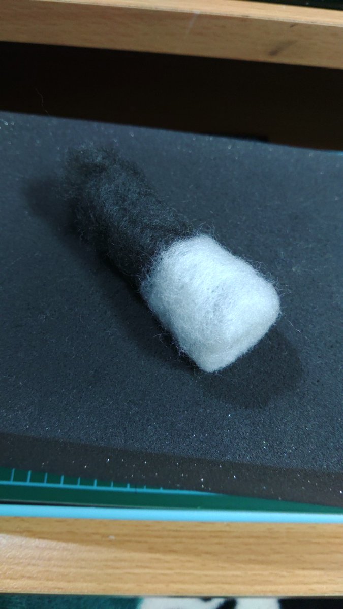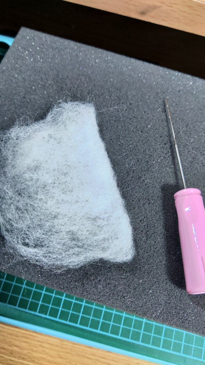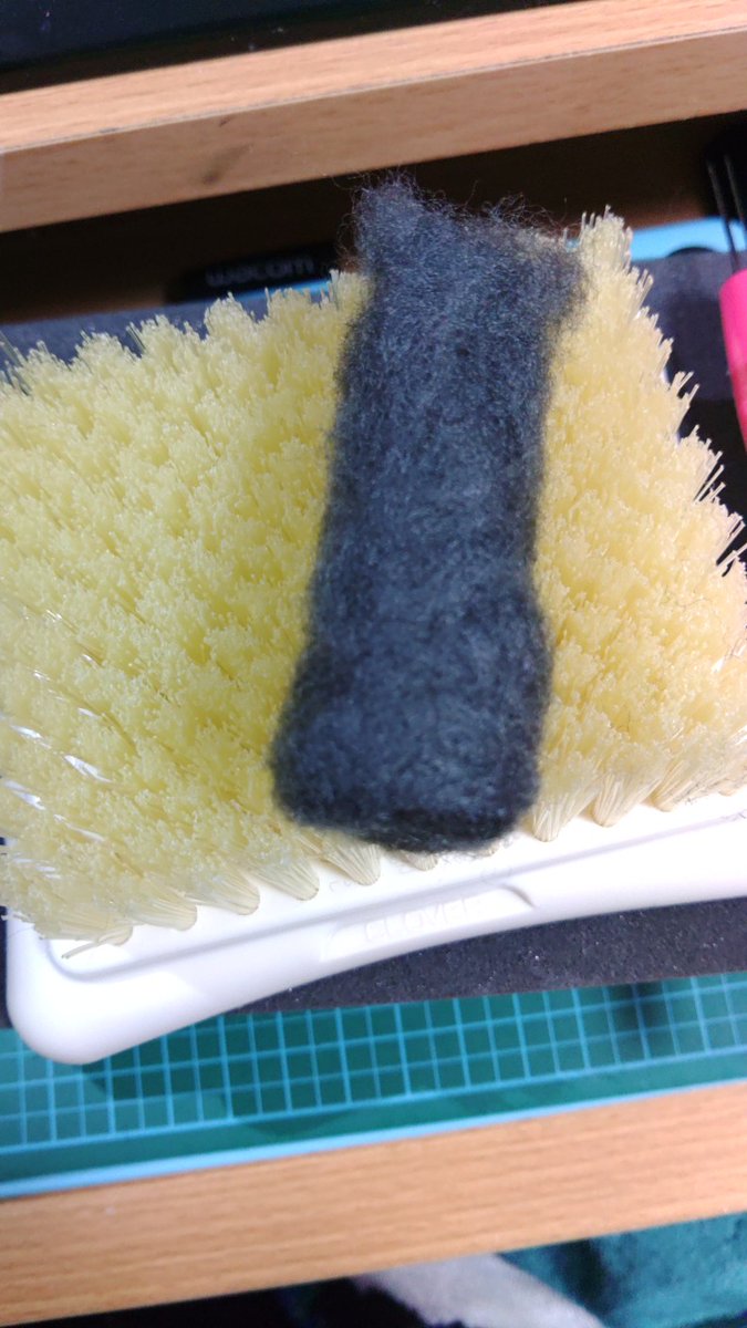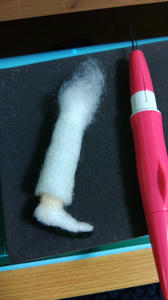 最初は普通のニードルで刺し込んで、仕上げに細めのニードルでつなげたところをならしつつ刺し固めるよ。