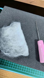フェルトを俵状にクルクルっと巻いて、通常~太めのニードルで軽く形を作ってから、3本タイプで成形するよ。
