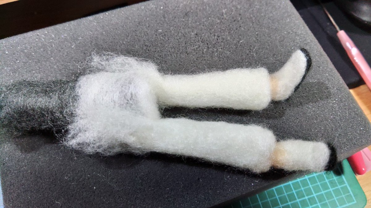 後で軽くフェルトを腰に巻いてなじませるように刺すよ。